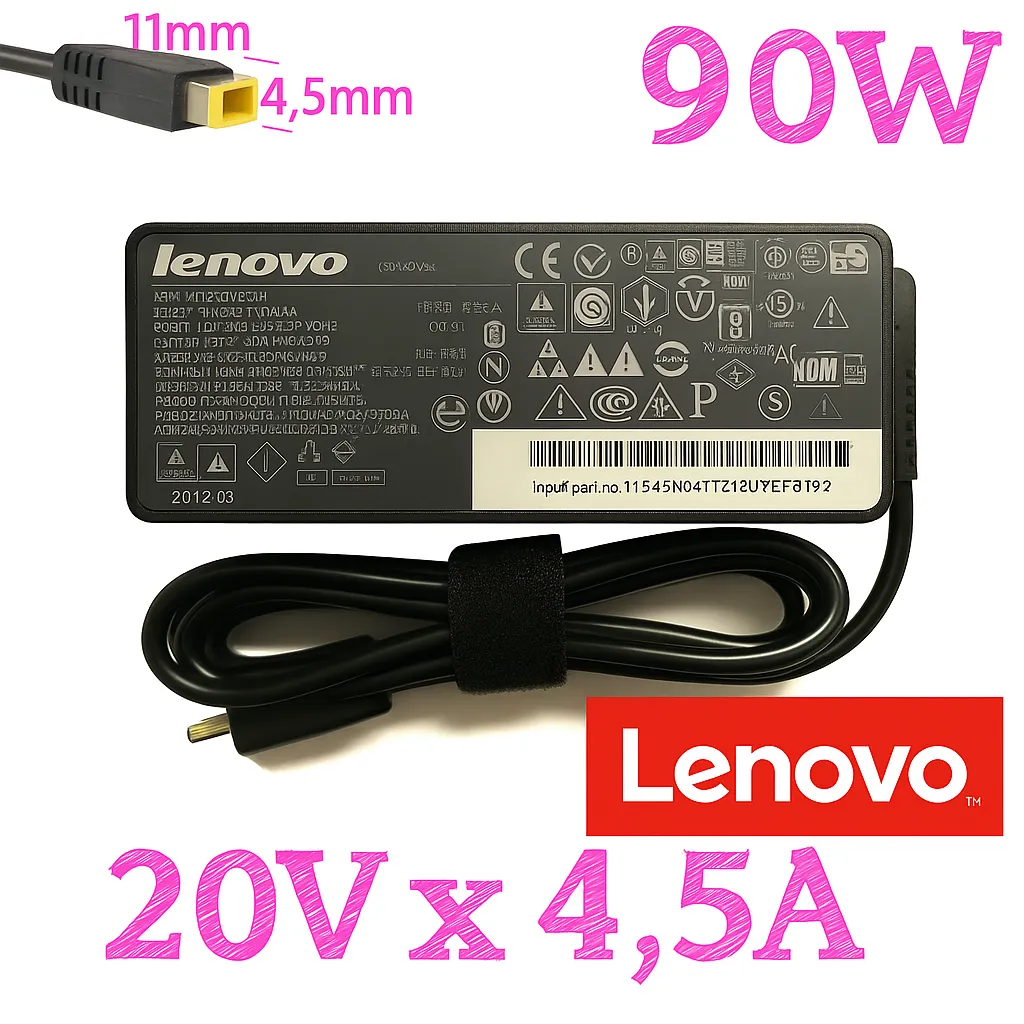 🔌 detalle del productoCargador Original IBM Lenovo 90W 20V 4.5A (Conector Rectangular Slim Tip – Punta Amarilla)Fuente de poder original Lenovo de alto rendimiento, con conector Slim Tip rectangular amarillo, ideal para portátiles que requieren mayor potencia que los cargadores de 65W.💻 compatibilidades comunesCompatible conLenovo ThinkPad T440 / T450 / T460 / T470 / T540 / T550 / T560Lenovo ThinkPad X250 / X260 / X270 / L460 / L470 / L570Lenovo Yoga 14 / 15 / 370 con entrada Slim TipLenovo IdeaPad de gama empresarial (con Slim Tip y 90W requeridos)Dockings y monitores Lenovo compatibles con Slim Tip 90W⚠️ No compatible con cargadores USB-C o conectores redondos (7.9mm o 4.0mm).45N0358, 0B47455, 45N0360, ADLX65NDC3A, 36200249, 45N0253, 45N0254, 45N0256ADLX65NLC3A, 36200251, 45N0257, 45N0258, 45N0260, ADLX65NCC3A, 36200253, 45N0261, 45N0262, 45N02640B47467, 0B47468, 0B47461, 0B47458, 0A65802, 0B47462, 0B47469, 0B47463, 0B474590B47456, 0B47457, 0B47465, 0B47459, 0B47466, 0B47465, 0B47462, 0B47464, 0B47463 45N0248 MODELOS COMPATIBLES: (NO TODOS LOS MODELOS ESTAN EN LA LISTA)LenovoADLX45NDC2A ADLX45NCC3A ADLX45NDC3 ADLX45NDC3AADLX45NLC2 ADLX45NLC2A ADLX45NLC3 ADLX45NLC3AADLX65NCC3A ADLX65NDC3A ADLX65NLC3A ADLX65SDC2A ADLX65SLC2A; ADLX90NCC2A 45N0252 45N0251Lenovo Flex 14, Flex 15, G40, G50,IdeaPad U430p, U530, Yoga 11, Yoga 11e, Yoga 13, Yoga 2 Pro, Z510,ThinkPad Edge E431, E531, ThinkPad Helix,ThinkPad 11e, L440, L540, S431, T431S, X240